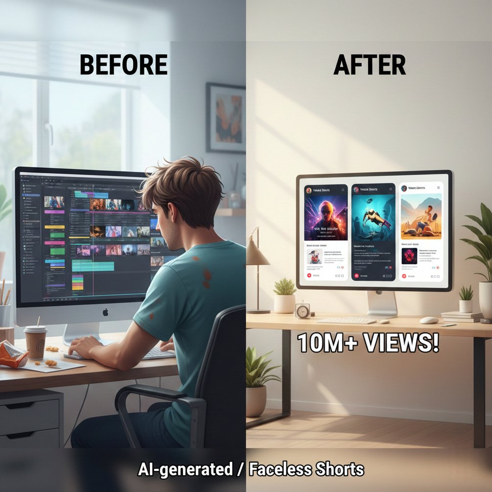 Stop spending hours editing videos. Get high-quality faceless AI shorts delivered weekly — ready to post on TikTok, YouTube Shorts, and Instagram Reels.